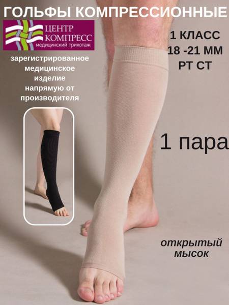 compression socks, compression stockings, knee-high compression socks, open toe compression socks, class 1 compression, varicose veins, lymphedema, post-traumatic swelling, arthritis, arthrosis, Center Compress, medical compression socks, leg pain relief, edema, thrombosis prevention, cream socks, beige socks, medical grade compression socks, Russia, ФСР 2009/06182