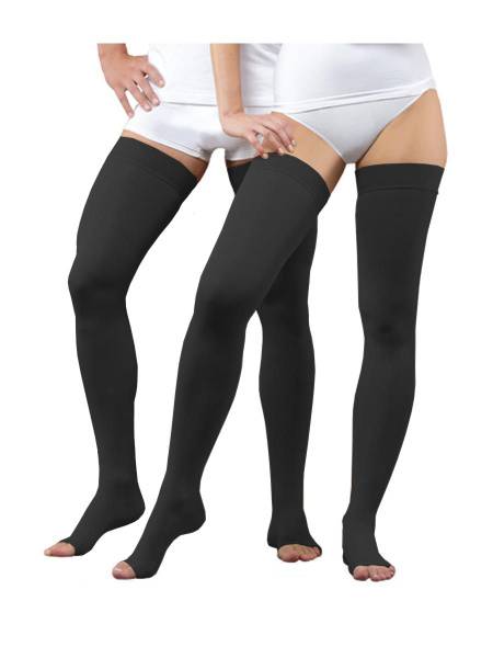 Tonus Elast black compression stockings (Class 2) provide superior support and circulation improvement. Reduce leg swelling, fatigue, and discomfort with these comfortable, medical-grade stockings. Ideal for daily wear and managing various circulatory conditions. Shop now for superior leg health.