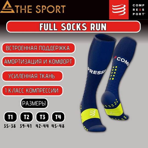 These high-performance compression socks are available in a vibrant blue and yellow two-pack. Upgrade your run today with Compressport technology.
