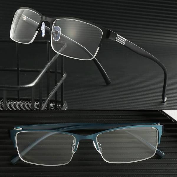 New, high-quality men's computer glasses. Business prescription eyewear crafted from durable, ultra-lightweight metal. Available in blue, black, and brown. Strengths: -100 to -600. Simple, fashionable, and ideal for office and business wear. Comfortable for all-day use.