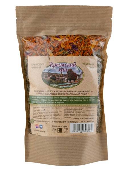 Crimean tea, herbal tea, Crimean Khan, raspberry leaf tea, blackberry leaf tea, rose tea, yarrow tea, thyme tea, lemon balm tea, calendula tea, natural tea, organic tea, hand-picked tea, gift tea, healthy tea, Crimean herbs, herbal blend, aromatic tea, loose leaf tea, zip lock bag, Crimean Fantasy.