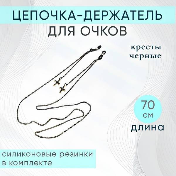 Elevate your style with this fashionable women's eyeglass chain. Crafted from high-quality materials, this durable and long-lasting chain ensures your glasses stay secure and stylish. Choose from a variety of elegant designs, including this sophisticated black metal cross pendant. Perfect for everyday wear or special occasions, this eyeglass chain adds a touch of charm and sophistication to any outfit. The exquisite cross detail enhances its elegance and appeal, allowing you to express your unique personality. Whether you're wearing sunglasses or prescription glasses, this chain is a perfect complement. Simply attach it to the ends of your glasses' temples for effortless use and peace of mind, knowing your glasses are safe from loss or damage. Don't miss the opportunity to add both protection and style to your look. Order your fashionable eyeglass chain today and experience the perfect blend of security and chic.