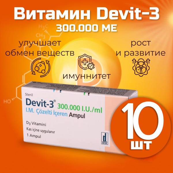 Devit 3 is a premium Vitamin D3 supplement from Turkey, providing a potent dose of 300,000 IU per ampoule. This high-concentration formula is designed to effectively support your body's vitamin D levels, particularly crucial during winter months when sunlight exposure is limited.