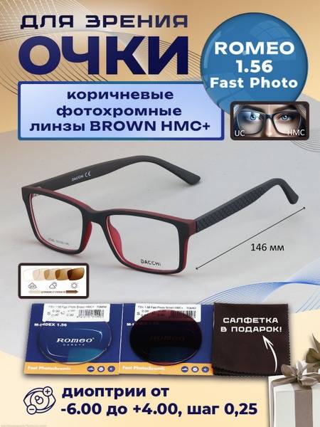 Experience superior vision with DACCHI model 37255 reading glasses, featuring advanced ROMEO 1.56 FAST Photocolor Brown HMC+ photochromic lenses. Crafted with precision using high-tech equipment from Essilor, a leading French manufacturer, these glasses are perfect for everyday use and reading. Expertly made by highly skilled artisans with years of experience in corrective eyewear, these glasses offer both comfort and style.
