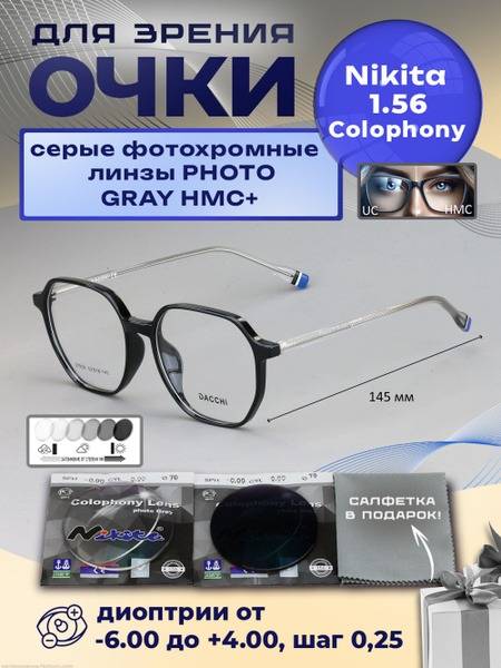 Photochromic glasses, reading glasses, DACCHI, model 37939, NIKITA lenses, 1.56 lenses, Colophony GRAY, HMC+, +3.25, Essilor, photochromic lenses, anti-reflective coating, hard coated lenses, water repellent coating, anti-static coating, reading glasses with magnification, prescription reading glasses, gray lenses, comfortable reading glasses, high-quality reading glasses.