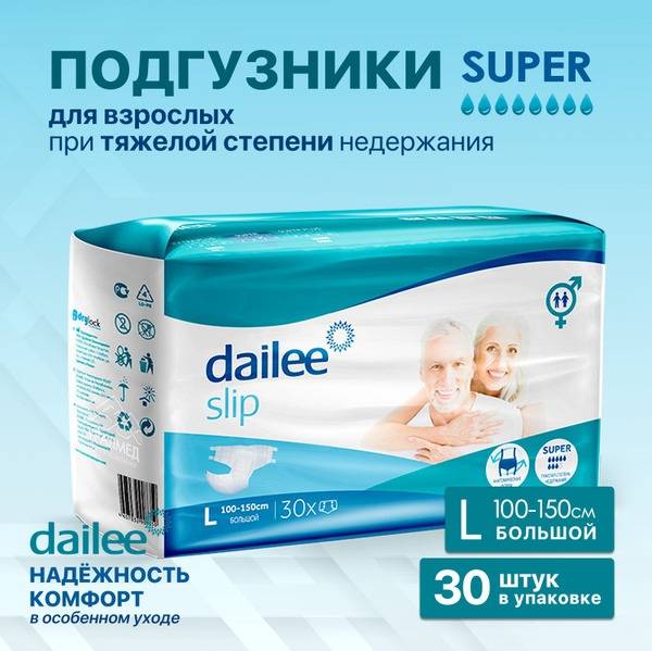 Description: Dailee adult diapers provide superior protection for individuals with moderate to heavy incontinence. Designed for both men and women, these anatomically shaped diapers offer a comfortable and discreet fit. The multi-layered absorbent core holds up to 1800ml, effectively managing leaks and odors. Breathable materials promote healthy skin, while elastic side barriers and refastenable tape closures ensure a secure and comfortable fit. A wetness indicator helps monitor diaper saturation. Size L (waist 100-150cm), 30 diapers per pack. 8-drop absorbency rating.