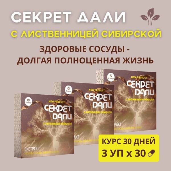 Dali's Secret with Siberian Larch: A comprehensive approach to health and well-being, working synergistically to improve overall health and vitality. This supplement is designed to help your body naturally address imbalances and achieve a state of optimal wellness.