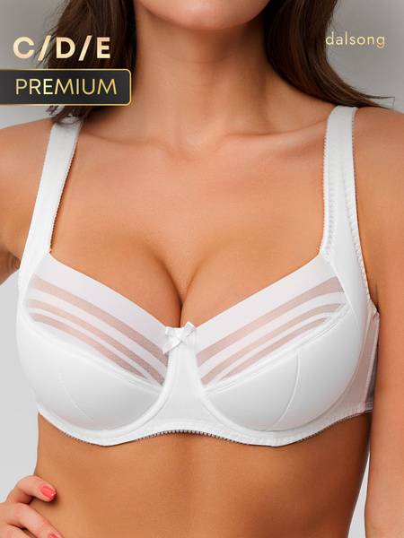 Description: Experience superior support and comfort with the DALSONG Premium plus-size bra. Designed with C, D, and E cup sizes and wide straps for ultimate comfort, this bra offers reliable support without compromising style. Featuring stylish mesh detailing, it's perfect for everyday wear or special occasions. Two rows of hooks ensure a customizable and secure fit, while a delicate pearl accent adds a touch of elegance. Find your perfect fit and embrace all-day comfort with DALSONG.