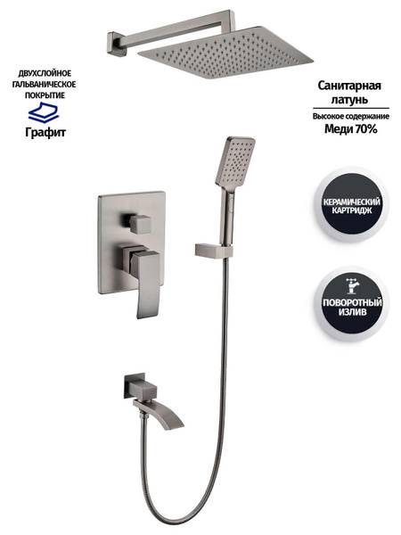 The Grohenberg built-in shower system boasts superior German engineering and quality. Crafted from high-grade sanitary brass (70% copper), it undergoes advanced processing and features double nickel-chrome electroplating and high-pressure powder coating for exceptional durability. Rigorous factory testing ensures leak-free performance for up to 30 years. Its robust, heavy-duty construction withstands three times the standard water pressure. The ergonomic design and smooth lever operation enhance user experience. This stylish and complete system includes a mixer, 8cm diameter shower head (3 settings), 30x30cm square overhead shower, 1.5m hose, gaskets, eccentrics, two reflectors (18x13cm and 6cm), and a 37cm overhead shower bracket. Box dimensions: 57x10.5x39cm (LxWxH); Weight: 5.2kg (net), 5.8kg (gross). Direct from the manufacturer, ensuring perfect condition thanks to robust, foam-padded packaging. Ideal for bathroom renovations seeking a built-in shower, shower system, shower set, rainfall shower, or nickel shower system.