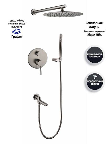 The Grocenberg built-in shower system, in a sophisticated dark gray finish, is crafted from high-quality sanitary brass with 70% copper content. Advanced manufacturing techniques and a double nickel-chrome electroplating process, followed by high-pressure powder coating, ensure exceptional durability and resistance to corrosion. Rigorous factory testing guarantees leak-free performance for up to 30 years. Its robust, heavy-duty construction withstands three times the standard water pressure. Experience effortless operation with the ergonomically designed lever and enjoy the sleek, modern aesthetic.
