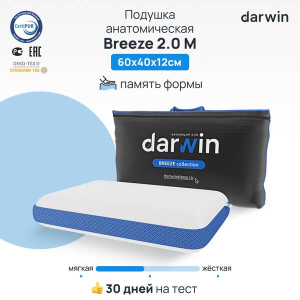 Experience unparalleled sleep comfort with the Darwin Breeze 2.0 M orthopedic pillow. This 40x60cm, 12cm high pillow features innovative memory foam infused with Milliken particles to inhibit bacterial growth. Cool Flow technology provides superior temperature regulation, keeping you cool and comfortable all night long. The removable cover, crafted from premium Turkish cotton, is luxuriously soft and resists pilling. Designed for back, side, and stomach sleepers, the Breeze 2.0 M provides gentle support, promoting proper head and neck alignment for relaxed muscles and a restful sleep. Its anatomical design adapts to your unique sleeping posture for a truly personalized comfort experience.