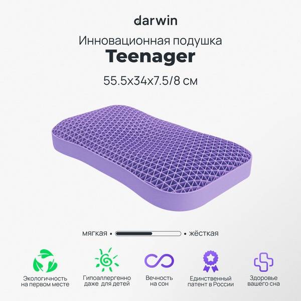 Description: The Darwin Cell Teenager Orthopedic Pillow is engineered for children aged 6+ using 100% patented Cell Technology®. This innovative, hyper-elastic polymer material, molded under high pressure, provides superior support and comfort for growing bodies. The unique, breathable mesh structure instantly adapts to the shape of the head and neck, promoting proper alignment and a restful sleep. Experience unparalleled comfort and support with its instantly adapting, pressure-relieving design. Enjoy cool, breathable sleep all night long, thanks to the material's superior heat dissipation. The durable and long-lasting Cell Technology® ensures years of comfortable, supportive sleep without sagging or deformation. Available in white, 55.5x34x7.5/8 cm.