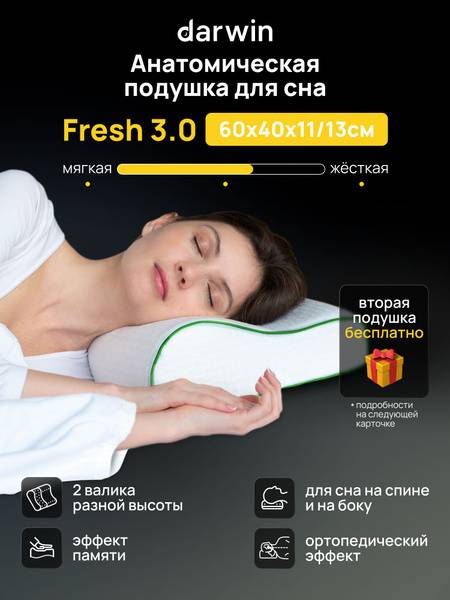 Keywords: orthopedic pillow, memory foam pillow, sleep pillow, neck pain pillow, ergonomic pillow, 40x60cm pillow, 11cm pillow, 13cm pillow, Darwin Fresh 3.0, CertiPur certified, memory foam, anatomical pillow, adult pillow, healthy sleep