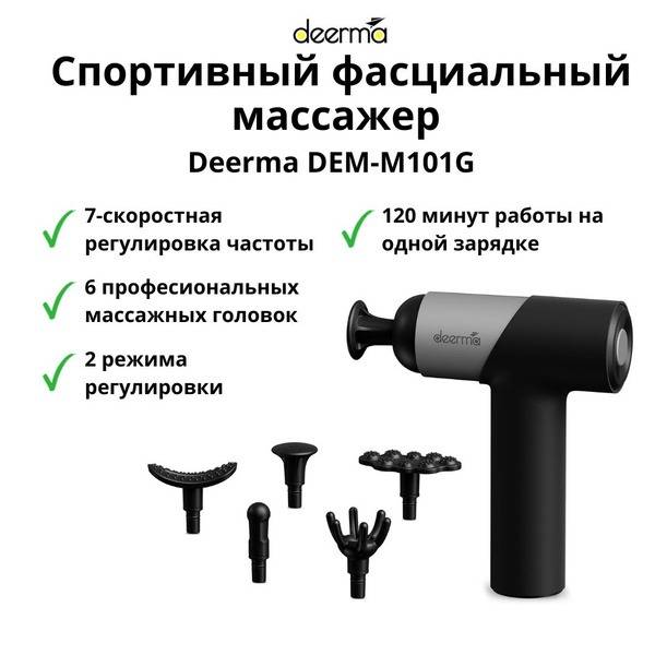 Experience deep tissue relief with the Deerma DEM-M101G sports fascia massager. This powerful cordless device boasts multiple massage modes – percussion, Shiatsu, and vibration – offering customizable intensity and speed settings. Equipped with 6 interchangeable massage heads, a long-lasting battery (120 minutes), and a convenient timer, the DEM-M101G provides targeted muscle recovery and relaxation. Features include battery level indication and a sleek, ergonomic design.