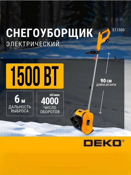The DEKO ST1500 electric snow thrower is the perfect solution for efficient and safe snow removal from driveways, sidewalks, and pathways. This powerful yet compact machine boasts a 1500W motor, providing ample power to tackle even heavy snowfall. Enjoy a comfortable and controlled experience with the adjustable height handle, ensuring optimal ergonomic posture during operation.