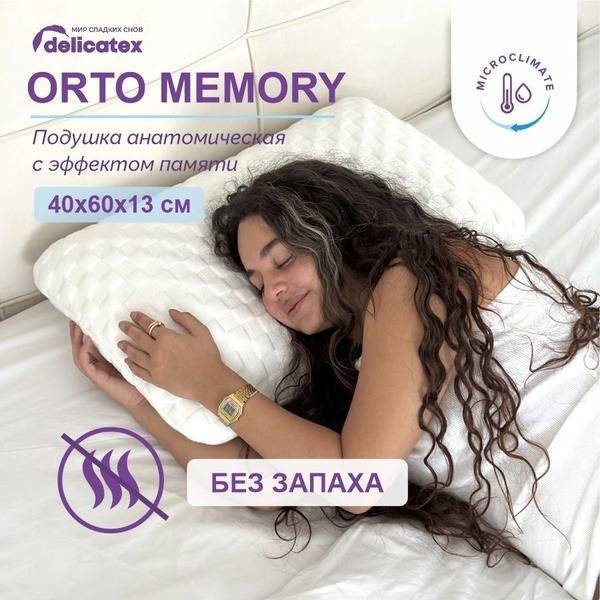 Experience luxurious comfort with the Delicatex Orto Memory anatomical pillow. This breathable, memory foam pillow cradles your head and neck, providing optimal support and pressure relief no matter your sleeping position. Its classic shape and perfect firmness ensure a restful night's sleep.