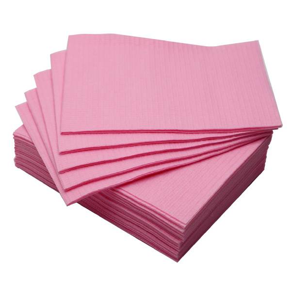 Elevate your practice with Om-Nika's premium disposable, non-sterile dental bibs. These 2-ply, 33cm x 45cm bibs offer superior client protection with their embossed horizontal design, preventing spills and stains during procedures. Made from 100% cellulose paper with a strong, thin polyethylene film, they provide excellent absorbency and a reliable moisture barrier. Perfect for dentists, tattoo artists, cosmetologists, and manicurists, these versatile bibs can also double as a workspace protector. Their vibrant pink color adds a touch of style to any clinic, creating a positive and comfortable atmosphere for both client and professional. Experience the difference of Om-Nika's – for comfort, cleanliness, and a touch of elegance.