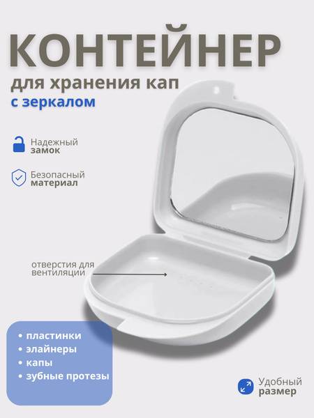 This universal dental container with a built-in mirror is the perfect solution for storing and caring for a wide range of dental appliances. Ideal for dentures, partial dentures, dental aligners, retainers, mouthguards, and veneers, this versatile case ensures your oral care items are kept clean, safe, and easily accessible.
