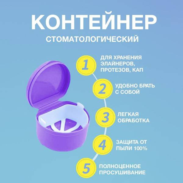 Description: Protect your dental appliances with our premium universal case for retainers, aligners, and dentures. This orthodontic container safely stores and transports aligners, sports mouthguards, retainers, braces, and dentures. Ventilation holes prevent moisture buildup and odor, inhibiting microbial growth. Made from high-quality polypropylene, this dental storage container features a removable cassette for easy cleaning and draining of cleaning solutions. A dust-proof seal and ergonomic design ensure a tight, protective closure, keeping your appliances safe from bacteria and dust, even during nighttime disinfection. Convenient for home, work, or travel, this case provides hygienic storage and helps maintain oral hygiene by protecting your appliances from contamination. Ideal for long-term protection of dentures, aligners, and other orthodontic devices.