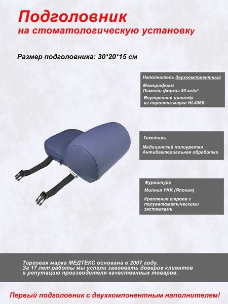 Keywords: dental headrest, dental pillow, dental chair headrest, memory foam headrest, neck support pillow, dental support pillow, ergonomic dental headrest, comfortable dental headrest, MEDTEX, 20x30 cm headrest, HL4065 foam, fastex, dental equipment, dental supplies.