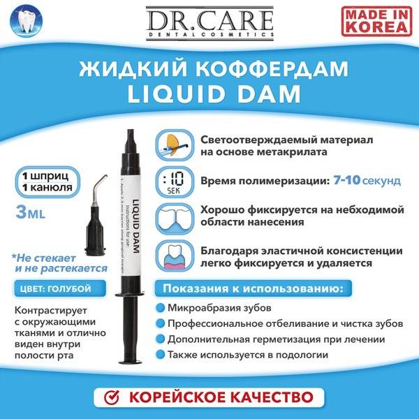 Liquid Dam, Liquid Dental Dam, Light-Curable Dental Dam, Photopolymerizable Dental Dam, Dental Dam, Teeth Whitening, Gingival Protection, Microabrasion, Tooth Sealing, Composite Dental Dam, Single Use, South Korea, Dental Supplies, Dental Materials, Podiatry, Single Application.