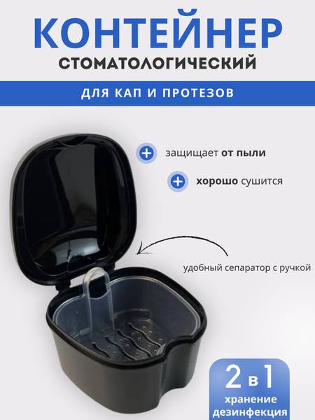 This dental container is a specialized case designed for the safe storage and transport of orthodontic appliances, including removable dentures, clear aligners, mouthguards, and dental plates.