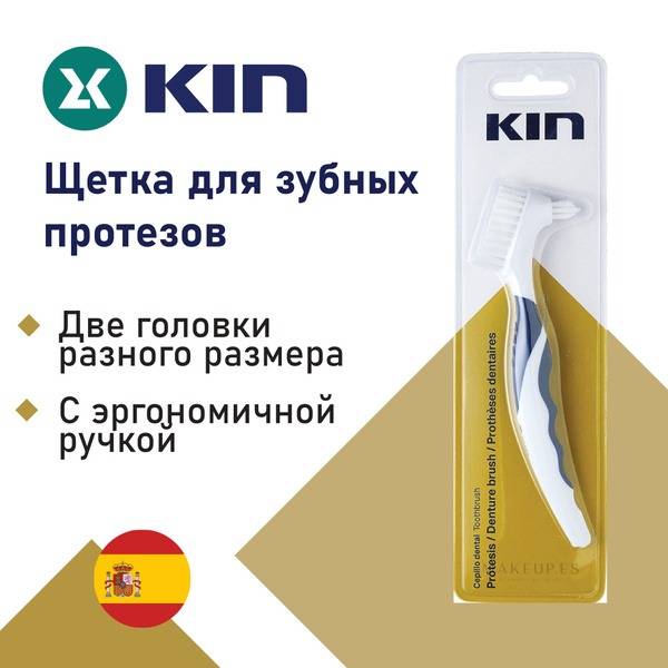 The KIN Denture Cleaning Brush features two differently sized brush heads for effective cleaning of both large and small denture surfaces, removable orthodontic appliances, and dental instruments. Its ergonomic handle and durable bristles ensure comfortable and thorough cleaning. For optimal results, use with KIN ORO active oxygen cleaning tablets.