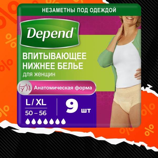 Experience ultimate comfort and confidence with Depend Adult Diaper Underwear for Women, size L/XL (waist 50-56 inches, weight 170-260 lbs). Designed specifically for women's bodies, these absorbent underwear provide superior protection against leaks and accidents, offering up to 5 times the protection of a regular pad.