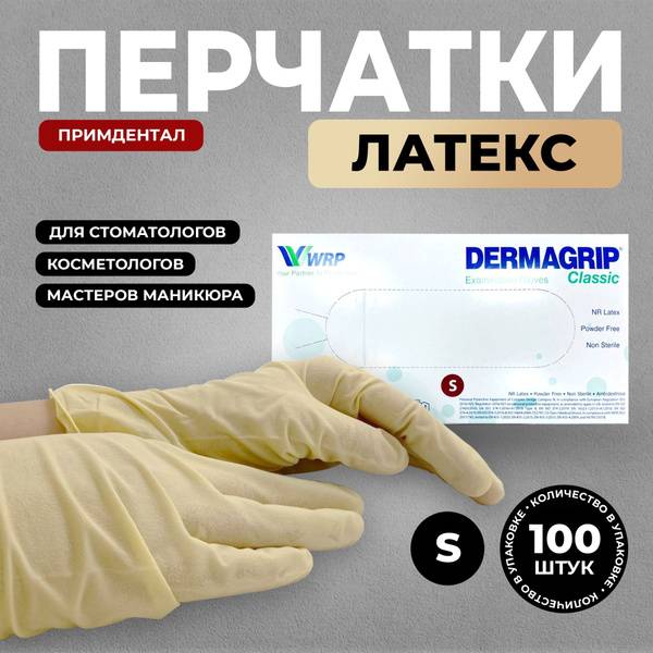 Title: Dermagrip Classic Latex Gloves, Size S, 100 Count (50 Pairs), Beige