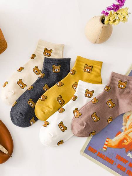 Description: Stay comfortable and stylish with this 5-pair pack of women's DETACHED short socks. Featuring an adorable bear print, these socks are perfect for active women and teens alike. Made from breathable, hypoallergenic material that won't fade after washing, they offer a snug fit that stays put without pinching. The comfortable waistband prevents any irritating tightness around the ankles. This versatile pack includes a range of colors: white, dark gray, mustard yellow, cream, and brown, ensuring you have the perfect pair for any outfit. Enjoy all-day comfort and playful style with DETACHED socks.