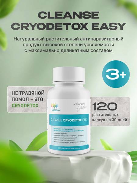 Cleanse Cryodetox Easy is a highly absorbable, all-natural parasite cleansing supplement formulated for children aged 3 and up. Utilizing cryotechnology, this gentle formula preserves the maximum potency of its carefully selected botanical ingredients. Each vegetable capsule contains a 100% natural blend, free from gluten, dairy, soy, yeast, sugar, artificial flavors, sweeteners, and colors. This 30-day supply (120 capsules) supports healthy parasite elimination and overall well-being. Take 2 capsules twice daily.