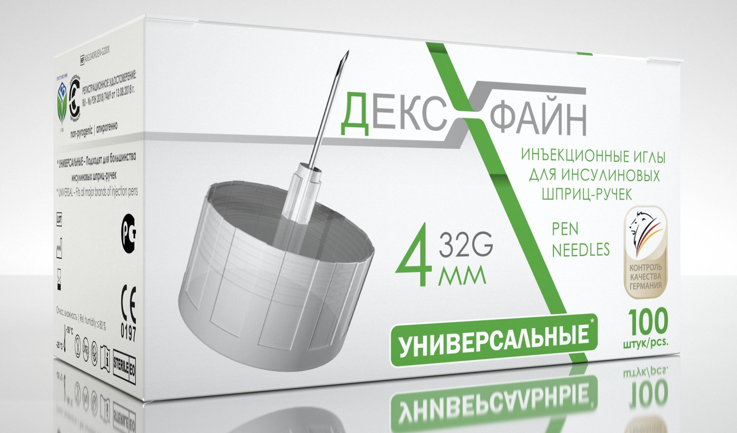 Experience virtually painless insulin injections with DEXFINE 32G x 4mm insulin pen needles. This 100-count box provides a convenient and cost-effective supply for managing your diabetes. DEXFINE needles are designed for universal compatibility, fitting most major insulin pen brands such as HumaPen Luxura, HumaPen Ergo, HumaPen Savvio, OptiClik, OptiPen, ComfortPen, AutoPen Classic, SoloStar DongBao Pen, FlexPen, NovoPen 3, NovoPen 4, NovoPen Echo, BioSulinPen, Victoza, and BiomaticPen.