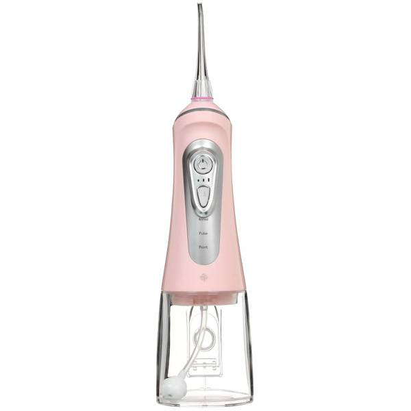The DEXP EIR-310P portable water flosser makes oral hygiene easier and more effective. Its rechargeable battery provides up to a month of use on a single 6-hour charge, perfect for travel. Includes a power adapter and four interchangeable nozzles. Experience superior cleaning with nine pulsation modes and a 320ml water tank. The built-in timer ensures convenient, effortless use.