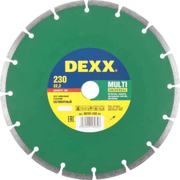 Keywords: diamond cutting disc, diamond blade, concrete cutting disc, segmented diamond blade, DEXX, 230mm diamond blade, 22.2mm arbor, angle grinder disc, concrete cutting, granite cutting, brick cutting, 36701-230_z01, diamond blade for concrete, high-quality diamond blade, affordable diamond blade, cutting disc for angle grinder.