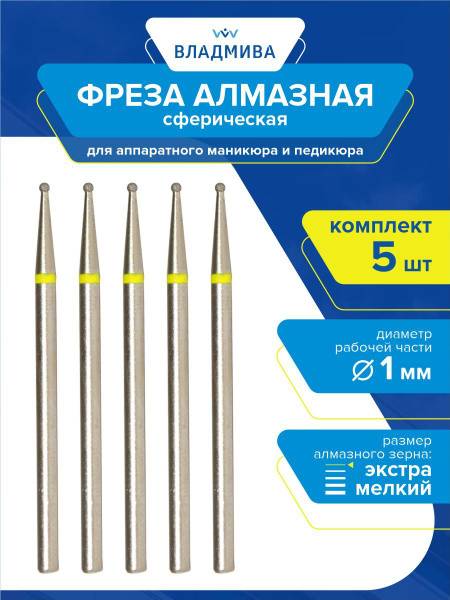 Experience superior precision with this set of 5 diamond ball burs, featuring an extra-fine grit and a 1.0mm diameter working surface. Ideal for professional hardware manicures and pedicures, these burs from TD "VladMiVa" are expertly designed for nail enhancement, intricate nail art, corrections, and the gentle treatment of calloused skin.