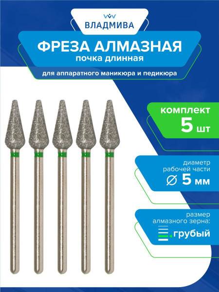 Elevate your manicure and pedicure services with this premium set of 5 long diamond nail bits, featuring a coarse grit and a 5mm working diameter. Designed for professional use, these "kidney" shaped bits are perfect for a range of applications, including nail enhancements, intricate designs, correction, and the effective treatment of rough skin.
