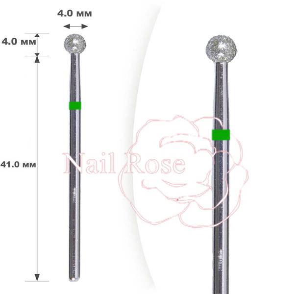 </section>High-quality 20-piece set of VladMiva diamond-coated ball burs. Specifications include: 4.0mm head diameter, green ring (medium grit), and 104 shank type. Manufacturer's Art. Nr.: 001. Essential for detailed work in nail care and dentistry.