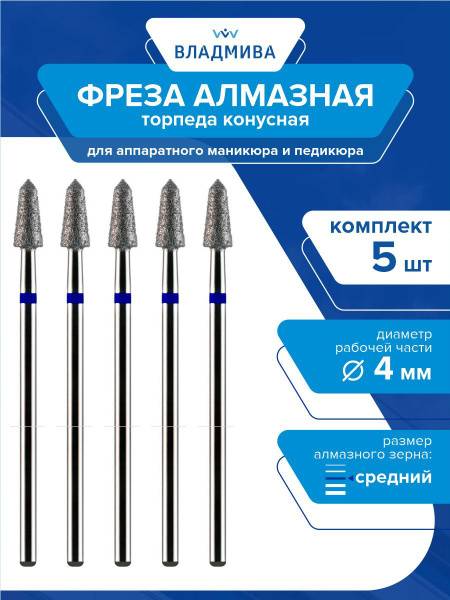 Achieve professional-grade nail and cuticle care with this 5-piece set of diamond cone torpedo carbide burrs. Each burr features a medium grit for optimal performance during manicure and pedicure procedures. The 4mm diameter working end is perfectly sized for precision work.