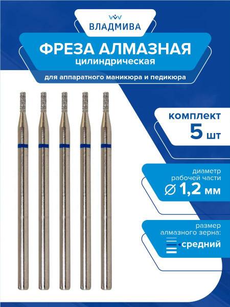 Description: This set includes 5 diamond cylinder burr bits, perfect for professional manicure and pedicure services. Each burr features a medium grit, ideal for various nail enhancement and correction procedures, as well as for treating callused skin. The cylinder shape offers versatility in nail artistry and cuticle care. The working part has a diameter of 1.2mm and a length of 6.0mm.