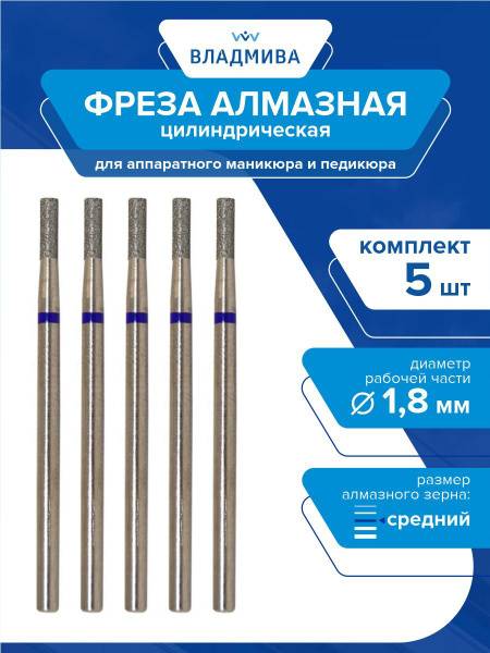 </section> <hr> <section>Achieve flawless results with this 5-piece set of 1.8mm medium grit diamond cylinder nail bits (866.104.107.060.018). Designed for professional hardware manicures and pedicures, these burs feature a 1.8mm diameter and 6mm length, perfect for nail extensions, design, correction, and cuticle care. The blue marking confirms medium grit, ideal for versatile use. Their reinforced, hardened texture ensures twice the durability and lifespan, while being easy to disinfect. A must-have for any nail technician's basic equipment.