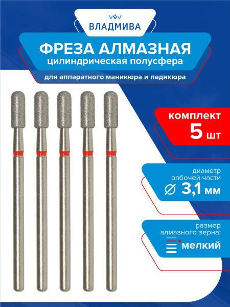 High-quality diamond carbide nail drill bit featuring a fine grit, semi-spherical head with a 3.1mm diameter. This set includes 5 durable drill bits, ideal for professional nail technicians. Specifically designed for e-file manicures and pedicures, these bits excel in nail enhancements, intricate designs, nail corrections, and gentle exfoliation of rough skin. The fine grit is indicated by a red color band. Experience enhanced durability and a doubled lifespan thanks to the reinforced texture, providing superior surface strength and hardness. Easily sanitized and a fundamental component for any minimal e-file manicure kit.