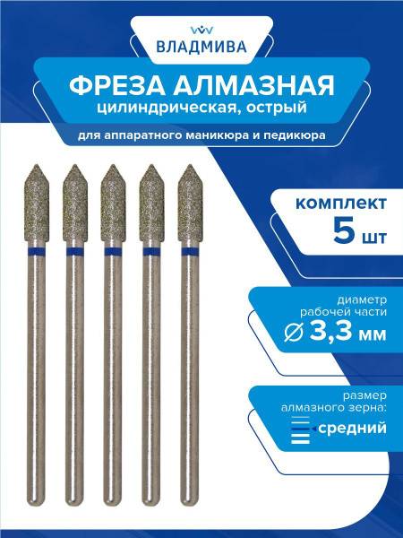 Get precise and efficient results with this 5-piece set of sharp, medium-grit diamond carbide burrs. Each burr features a cylinder shape with a 3.3mm diameter working end. These high-quality diamond burrs are essential tools for professional nail technicians, perfect for a range of applications including nail enhancements, intricate designs, nail corrections, and the effective treatment of rough skin.