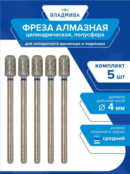 Elevate your nail care services with this premium 5-piece set of 4mm cylindrical diamond nail drill bits, featuring a medium grit. The precise half-sphere design makes these burs ideal for professional-grade work in both manicures and pedicures, including nail building, intricate nail art, and effective correction. They are also suited for treating hardened skin.