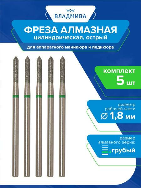Each bur boasts a 1.8mm working part diameter and an 8mm working part length. These diamond burs from TD "VladMiVa" are your essential tools for hardware manicures and pedicures, perfect for nail enhancements, intricate designs, and precise correction of the nail plate. They are also highly effective for smoothing and treating rough skin.