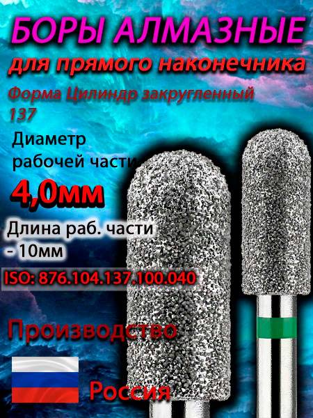 4.0mm Green Diamond Bur - Rounded Cylinder - Straight Handpiece - 100µm - 5pk (Russia)