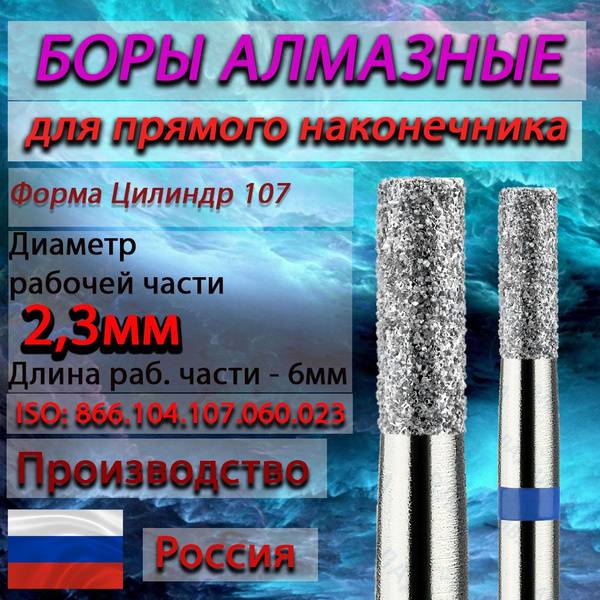 Cylindrical Diamond Burs for Straight Handpieces, 2.3mm Working Diameter (023), Blue Grit, Pack of 5 - Precision Abrasive Tool