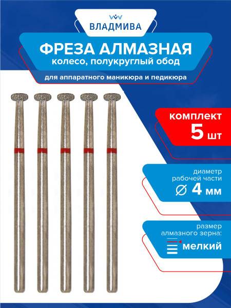 Engineered for professional manicure and pedicure by TD "VladMiVa," these diamond bits are ideal for nail enhancements, design, correction, and cuticle care. The fine grit (indicated by a red band) ensures a gentle yet effective touch on the nail plate and for treating callused skin.