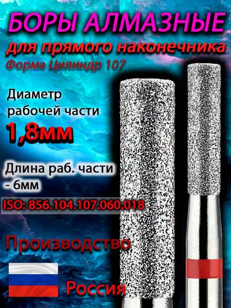 Experience superior performance with our high-quality diamond dental burs. Manufactured in Russia since 2005, these burs feature a cylindrical working part with a 1.8mm (018) diameter and a 60mm working length, sold in packs of five.