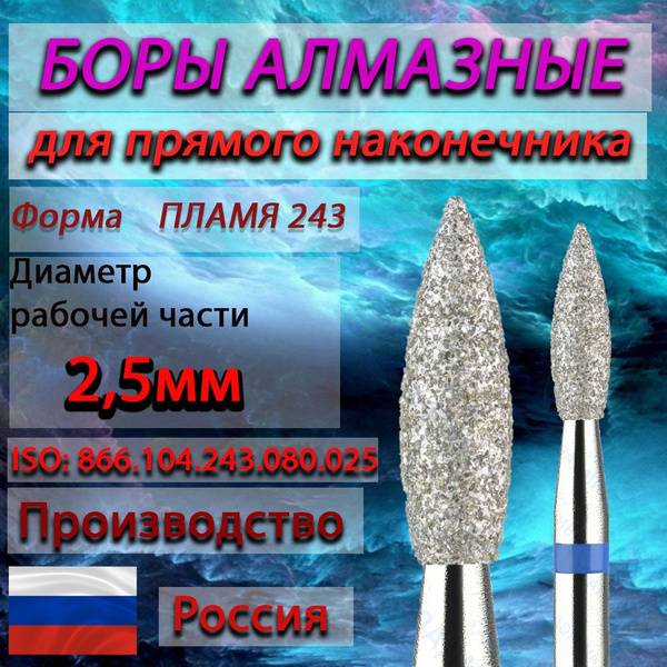 Premium Russian Diamond Burs (5pc) - Flame, 2.5mm, Blue Grit for Dental & Jewelry Applications