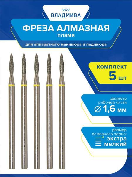 Discover our premium Diamond Flame Bur, Extra Fine Grit, measuring 1.6mm in diameter. This essential set includes 5 high-quality diamond burs, expertly crafted for professional nail care. The "flame" shape, combined with an extra fine grit, is ideal for precision work in manicure and pedicure.
